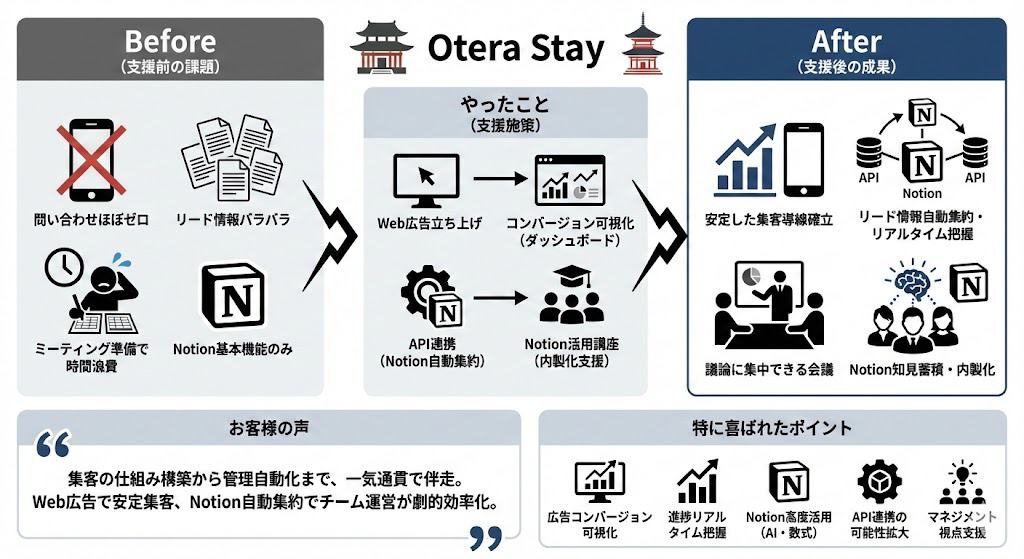 集客の仕組み構築から管理の自動化まで、一気通貫で伴走してもらえたことが最大の価値でした。